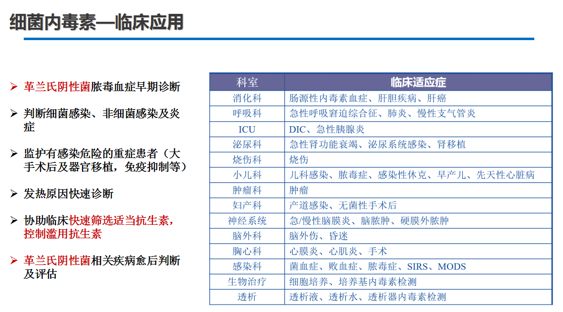 內毒素:鑒別細菌感染(革蘭氏陰性菌),上機后1個小時內快速檢測是否為革蘭氏陰性菌感染;